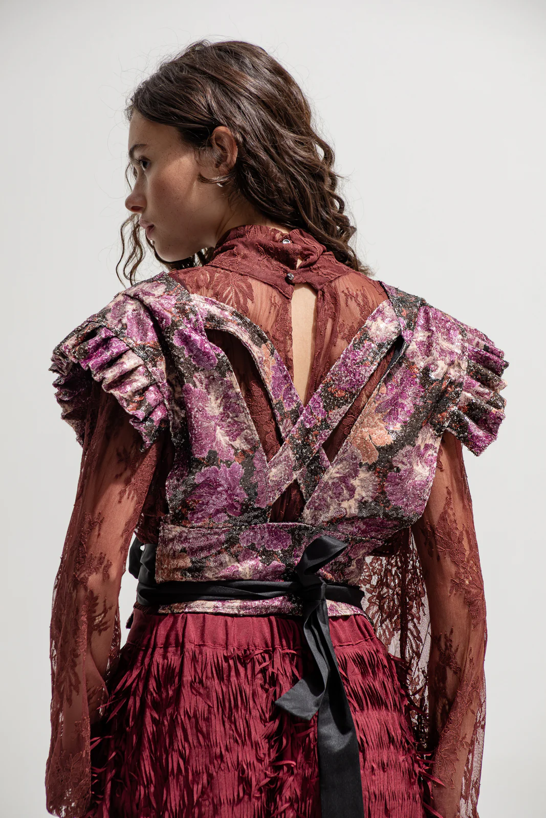 Step into the spotlight with this sculptural sequined vest — a signature Jerkins piece that blends bold shape with effortless femininity. Crafted from shimmering floral sequins, it reflects the light beautifully, adding depth and texture to every movement.