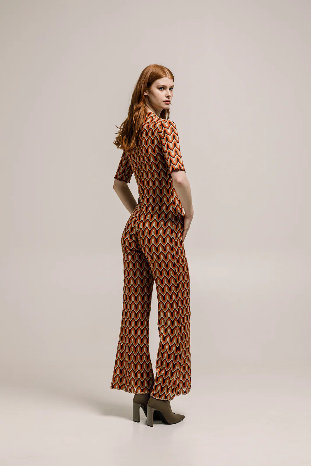 The Fabi Overall in printed ginger is a bold, 70s-inspired piece featuring a warm-toned abstract pattern,zipper front closure Ā and a fluid, wide-leg silhouette. Its relaxed fit and lightweight fabric make it ideal for both casual and elevated styling. The retro print and flattering cut evoke a vintage vibe, perfect for making a statement while staying effortlessly comfortable.Ā