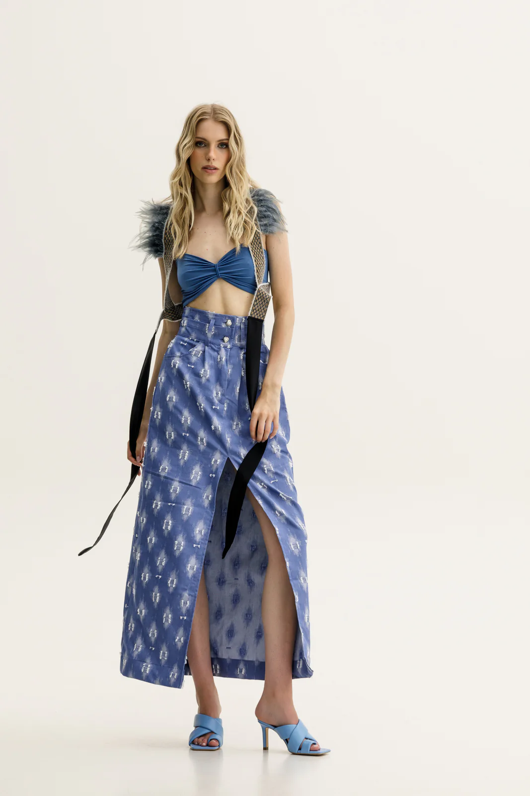 The Nadra Skirt in Denim Blue is a stylish and versatile addition to your wardrobe. The denim blue color offers a classic look that can be easily paired with various tops and accessories. Whether dressed up with a blouse and heels or kept casual with a t-shirt and sneakers, the Nadra Skirt provides a chic foundation for multiple outfits.