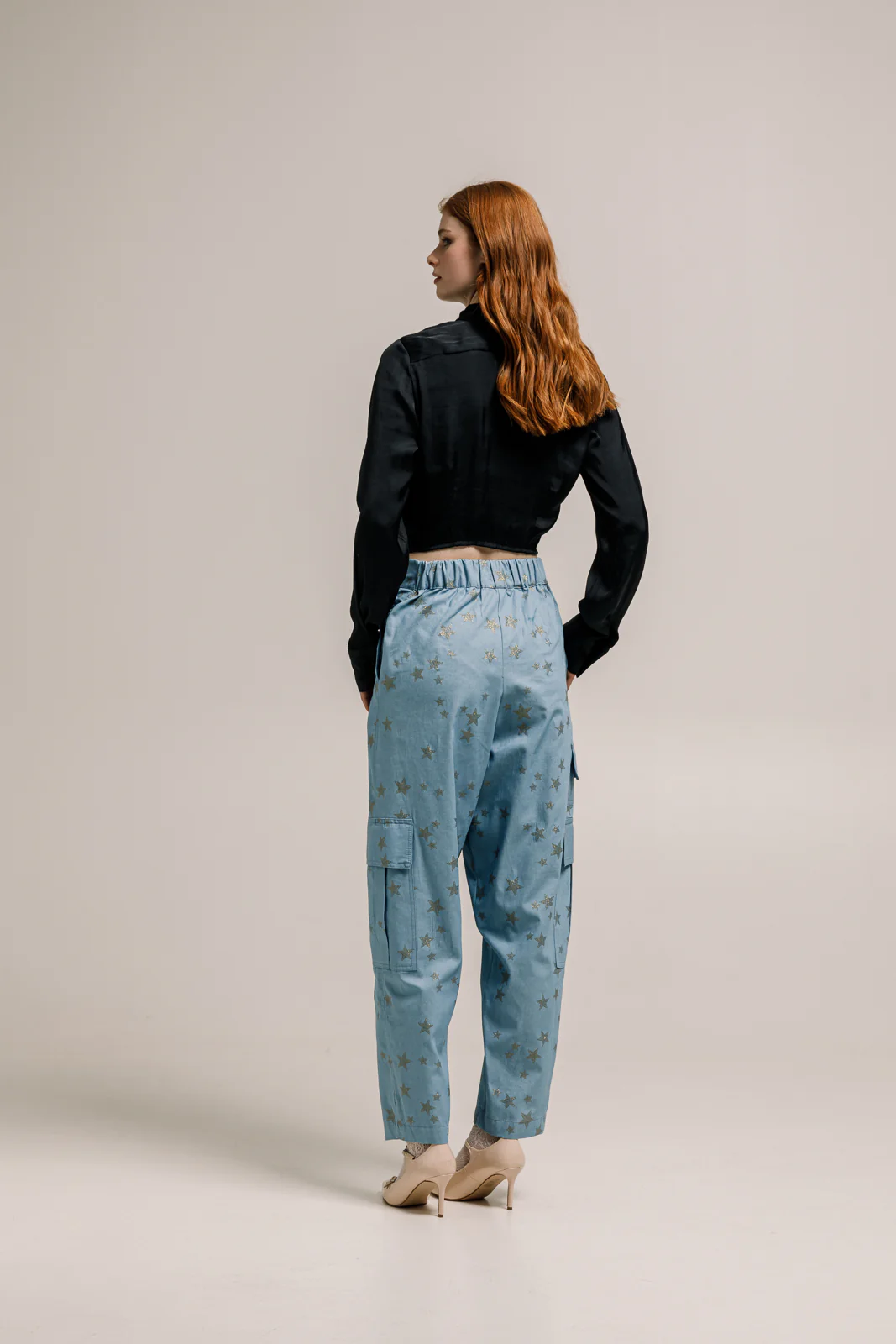 The Uba Shirt in black features a cropped fit that adds a modern, playful touch to its relaxed, comfortable design. The classy hue and short length make it ideal for pairing with high-waisted pants or skirts, creating a flattering silhouette. Perfect for a casual day out or layering, this shirt offers effortless style with a contemporary twist.